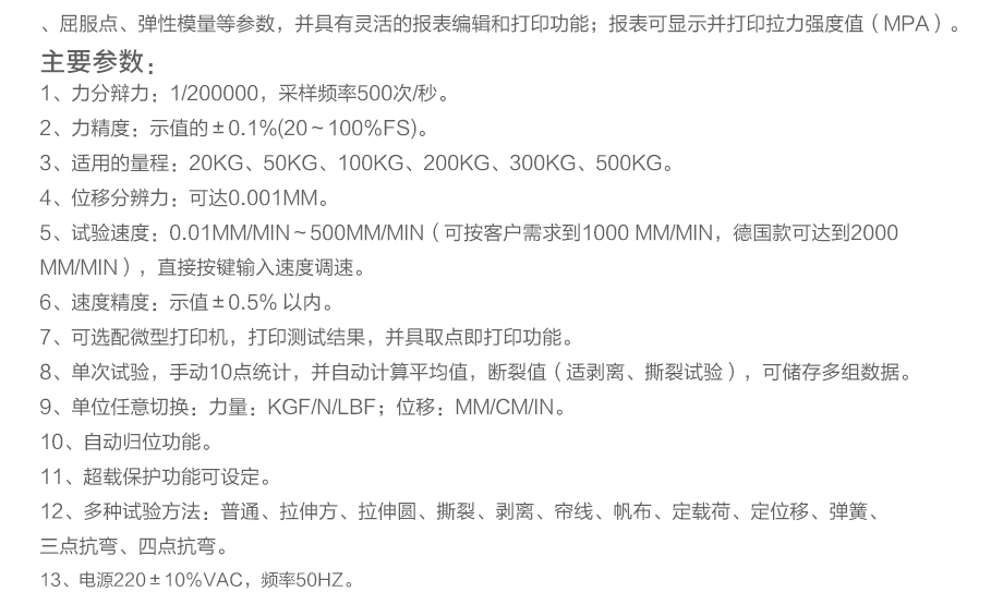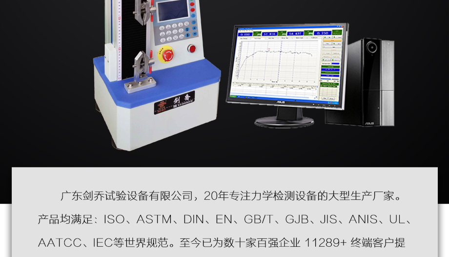 產品型號:JQ-8850 品牌:劍 喬 用途:本系列機廣泛用于各類薄膜、五金、橡膠料、紡織、建材、絕緣體、電線、電纜、端子等各類材料。測試其拉伸、撕裂、穿刺、剝離、抗壓、彎曲、抗剪切、定荷重、定位移、三點抗折