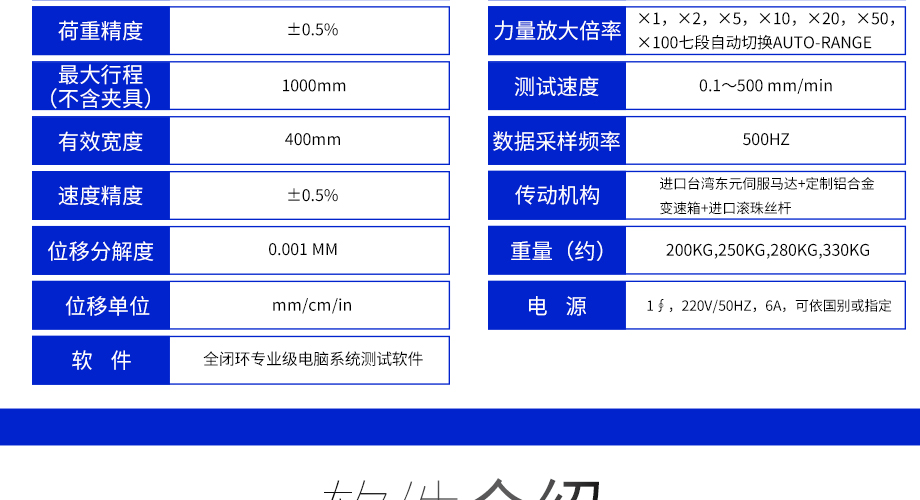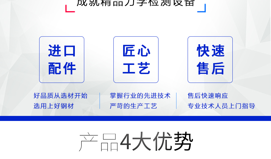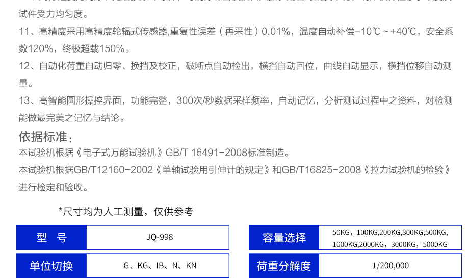 產(chǎn)品型號:JQ-998(高端定制款) 品牌:劍 喬 用途:高端雙柱拉力機(jī)主要測試原物料、成品、半成品的物理特性,可做抗拉力測試、抗壓力測試、抗彎測試,取得伸長量、伸長率、應(yīng)力、應(yīng)變等測試結(jié)果及測試資料。